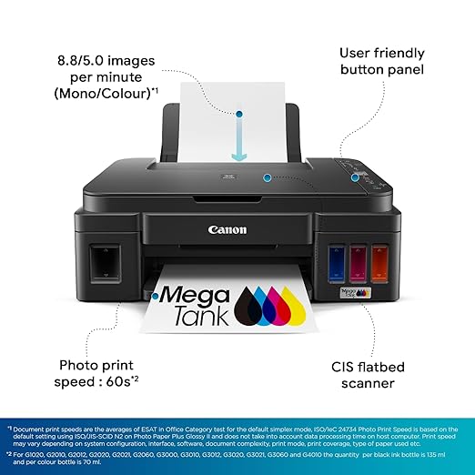 Canon PIXMA WIFI MegaTank G3010 All-in-One Wireless Ink Tank Colour Printer Multifuction Printer Copy / Print / Scan / Photo / Upto 13,000 Page Print ( 1 Yera Warranty Home Service )