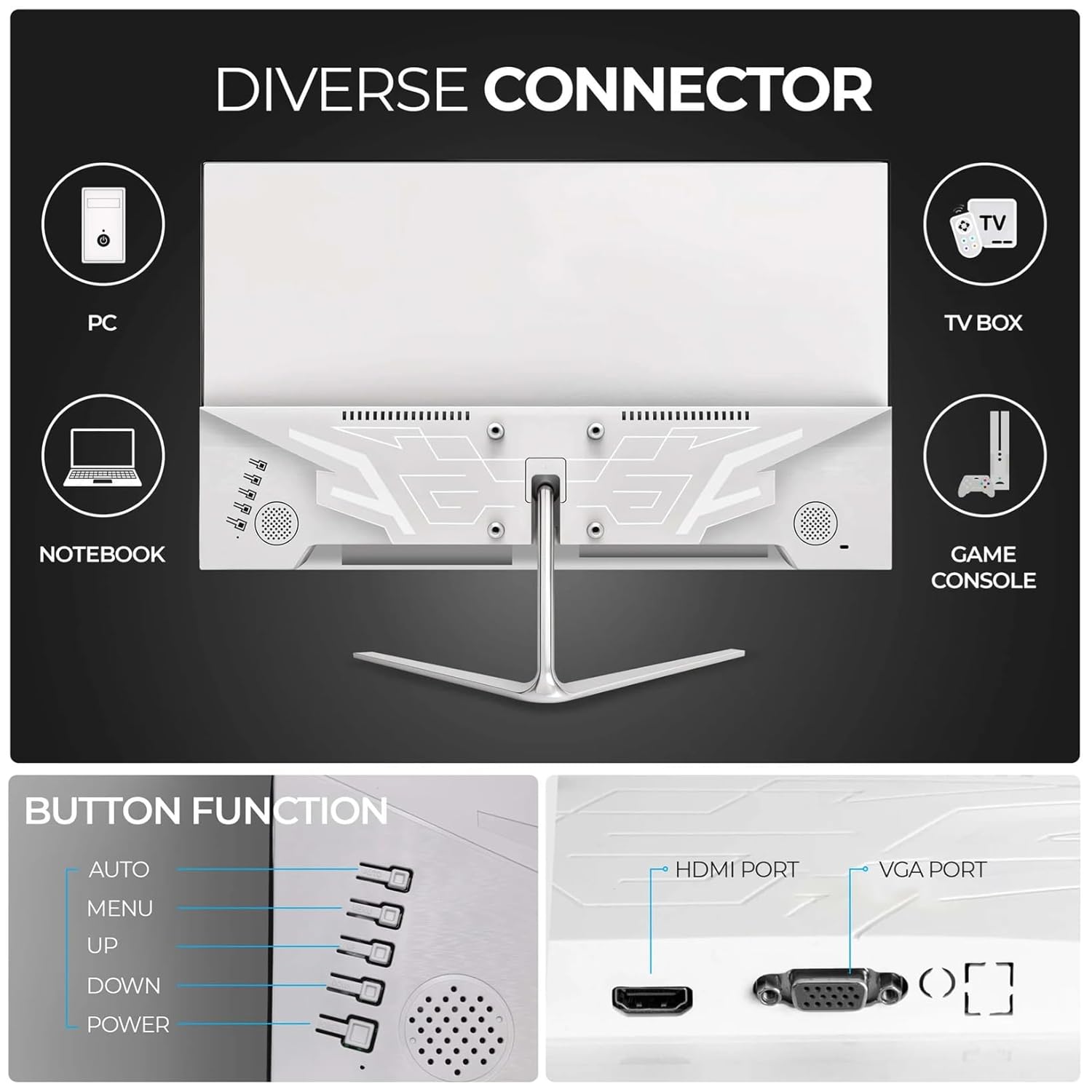 CONNECTIVITY OPTIONS: Features HDMI and VGA ports for versatile display connections, compatible with PC, gaming consoles, and TV boxes